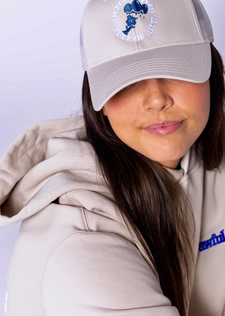 Full of Awe Embroidered “Bone” White Baseball Cap